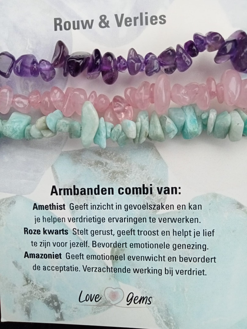Amethist: geeft u inzicht in gevoelige zaken en kan mogenlijk helpen bij het verwerken van verdrietige ervaringen o m ze te helpen verwerken.